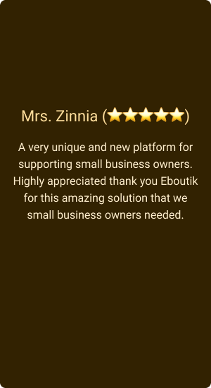 I suggest every small business owner to immediately sign up with eBoutik to build a lasting relationship with clients, fellow vendors and be a part of a growing community.
