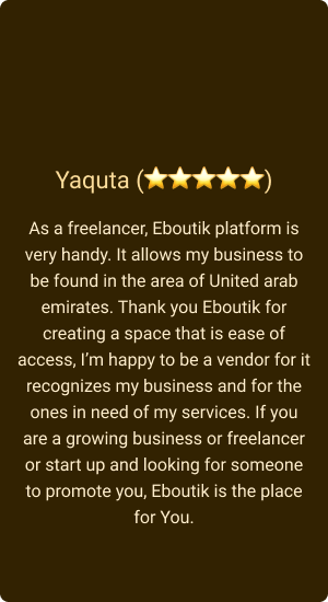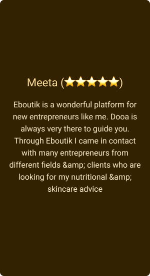 My experience with eBoutik has been one of its kind, it is not just a website to list my services, but it is a wholesome experience with visibility and mentorship from Doaa.